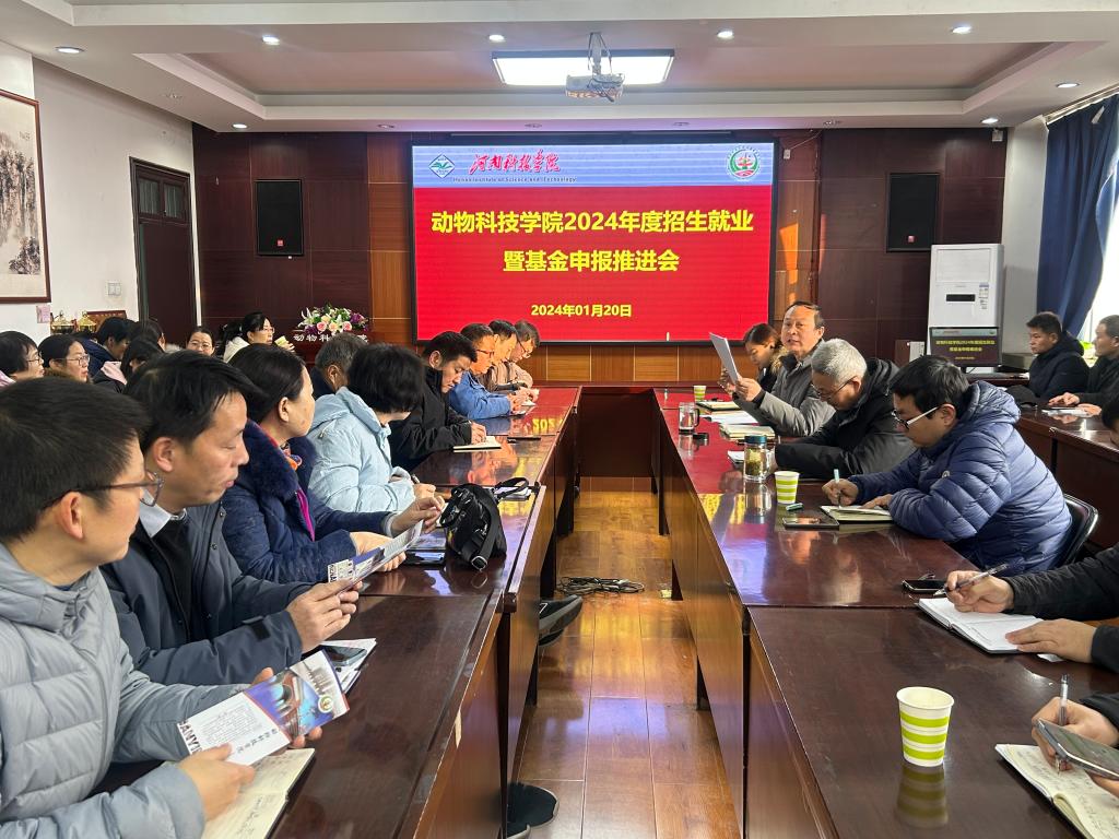在E302会议室召开2024年度招生就业暨基金申报推进会,学院领导班子成员及全体教职工参加会议,会议由学院党委书记胡付广主持。