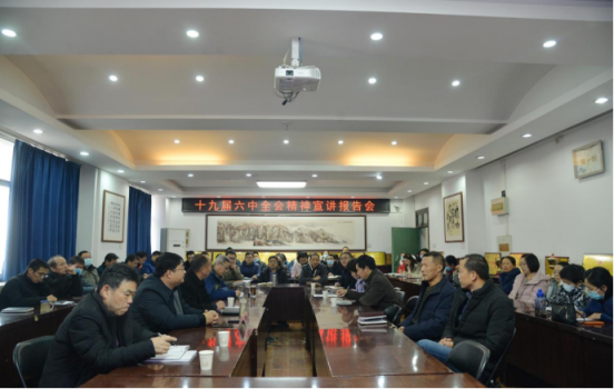 邀请学校十九届六中全会精神宣讲团成员郭立来院宣讲,学院全体教职工参加。会议由院党委书记郭东升主持。
