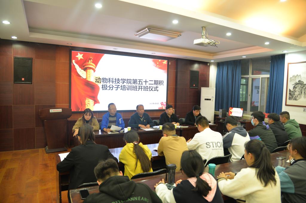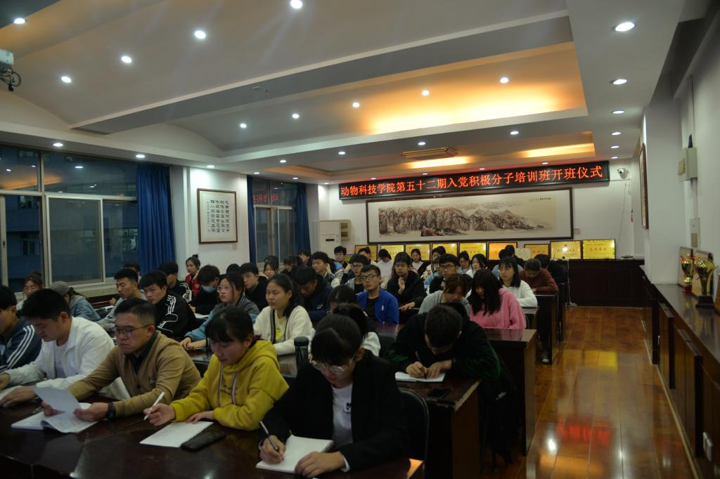 第五十二期入党积极分子培训班开班仪式在E302举行,院党委书记郭东升、副书记杨国友,团委书记张书响、副书记张帅鹏,辅导员赵迁参加本次仪式。