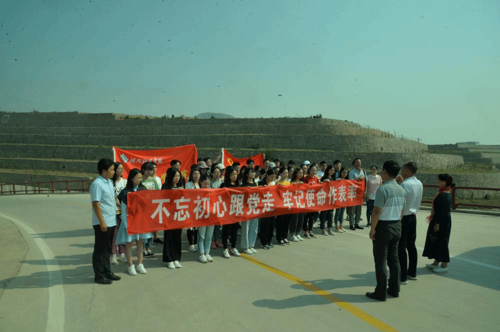 金门沟造地工程现场,学生们深深地感受到吴金印几十年如一日带领当地群众同甘共苦、知难而进、艰苦奋斗的精神,并在此重温入党誓词。
