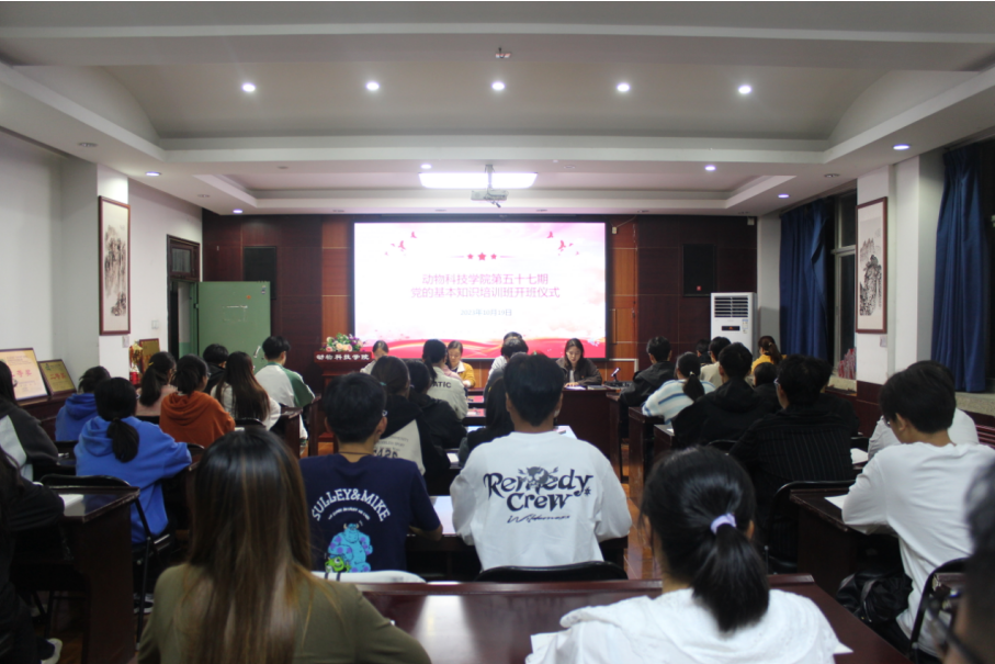 于10月19日晚在E302会议室举办第57期入党积极分子培训班开班仪式暨党课第一讲。学院党委副书记朱黎娅、团委书记杨胜利、辅导员赵迁、谢欢欢及39名57期积极分子参加本次会议,会议由杨胜利主持。