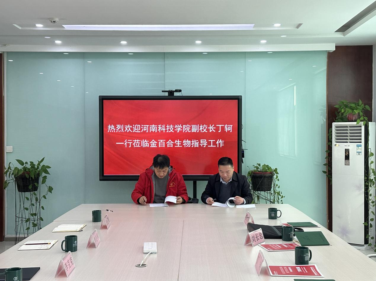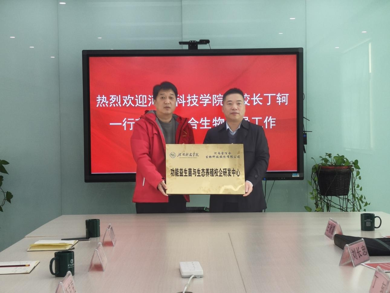 与河南金百合生物科技股份有限公司共建功能益生菌与生态养殖校企研发中心签约暨揭牌仪式。