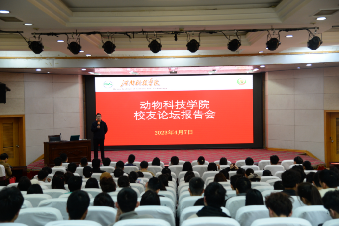 报告会上,河南艾格多科技有限公司总裁任振东以《畜牧业,未来已来》为题,以他自己的学习、职业生涯为例,结合畜牧业现状、发展前景、人才需求等方面进行介绍,通过展望畜牧产业的未来向同学们提出了希望和寄语,他勉励同学们要树立矢志畜牧、报国强农的个人理想,规划好大学四年学习生活,成长为对社会、对国家有用的人才。
