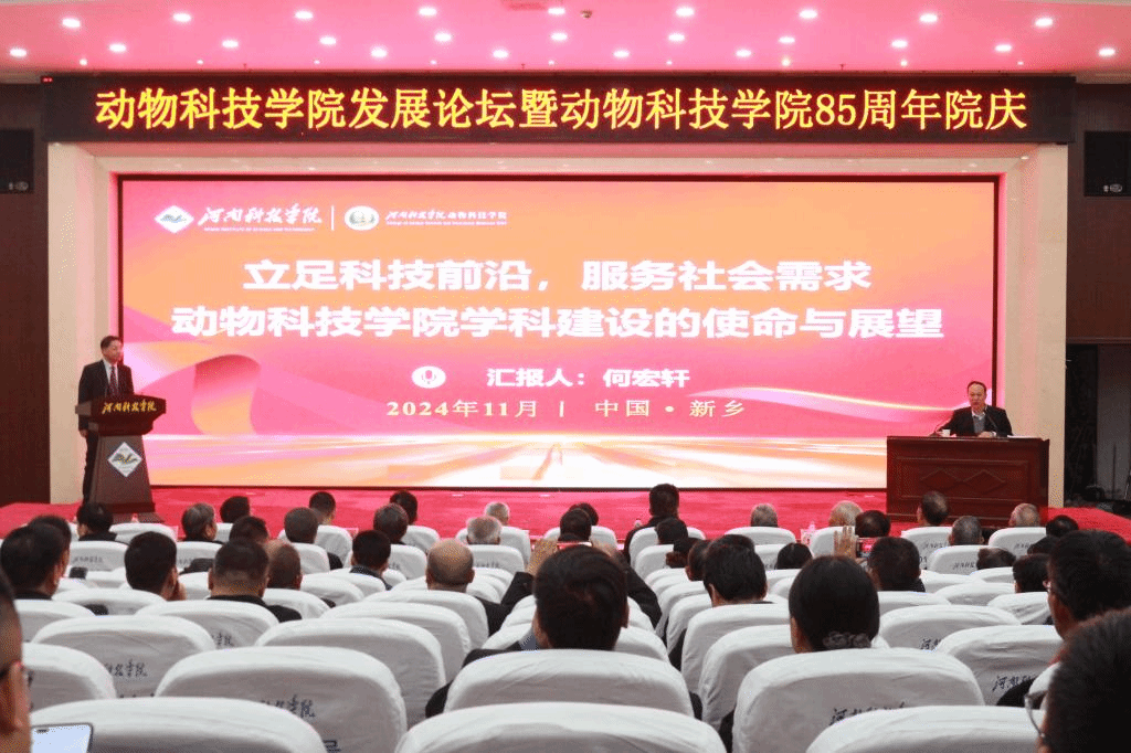 在校行政楼308会议室举办建院85周年院庆暨高质量发展论坛,副校长马金友、丁轲出席大会。动物科技学院历任老领导、老专家、老教授,来自全国各地的优秀动科校友,在校师生代表共300余人参加了大会。河南农业大学、河南科技大学、河南牧业经济学院、南阳农业职业学校、河南农业职业学院兄弟院校代表,正大集团豫东区代表到会祝贺。大会由动物科技学院党委书记胡付广主持。