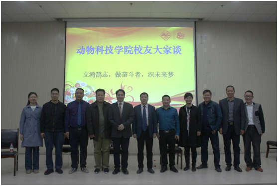 各位优秀校友首先介绍了各自单位的一些情况,然后结合自身的经历,为大家讲述自己的求知求学和研究或创业经历,展示了他们在本专业取得的一些成就,而这些成就无一不得益于他们在大学期间打下的坚实的专业基础,以及他们在大学初就给自己定下的明确的未来目标。各位优秀校友通过自身的经历和成就激励参会的本科生,让学生明白动科专业大有所为,一定要巩固专业思想,养成好的习惯,规划好自己的未来和梦想,设计好大学四年的生活,做好当前阶段应该做好的事情,不断的拓宽自己的知识面,为将来进入社会角色的转变打好基础。