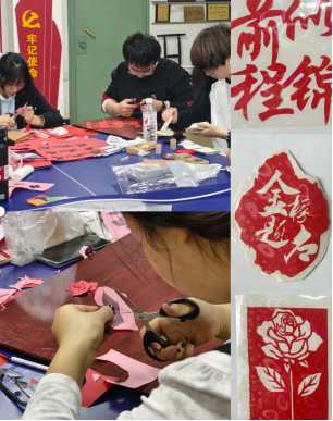 组织开展了“以纸为愿,助梦前行”手工剪纸活动。活动中,同学们围坐在一起,手中的剪刀灵活地在纸上穿梭,一幅幅精美的剪纸作品逐渐成形。有“前程似锦”“成功上岸”等祝福话语的艺术字,有写满考研祝福的贺卡。同学们以文传情,以字传意,心手相应,用心制作,一笔一画写下祝愿与鼓励。