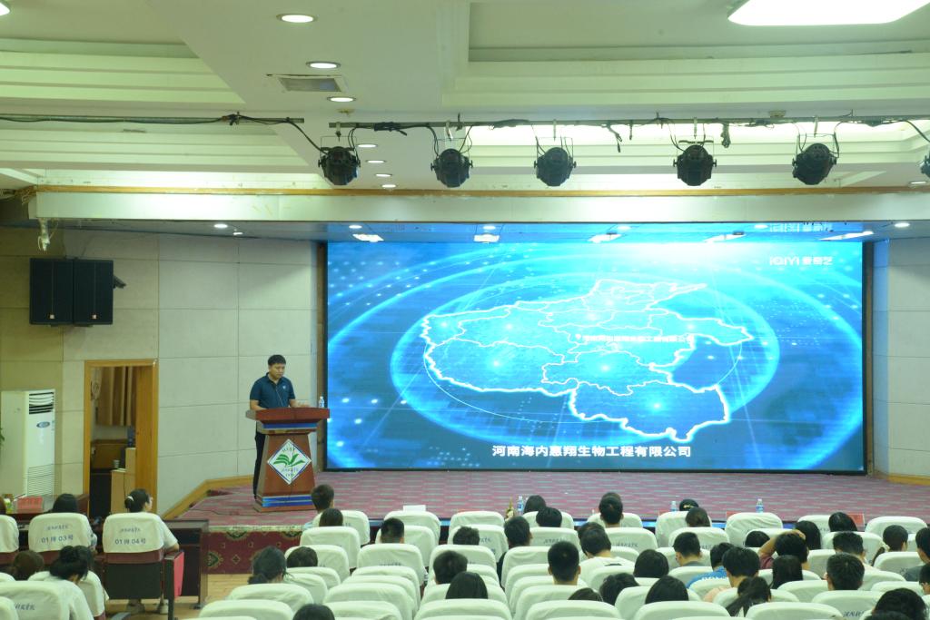 牧原食品股份有限公司、温氏食品集团股份有限公司、瑞派豫华(郑州)宠物医院管理有限公司和河南普特威动物药业有限公司人力资源部负责人分别从产业信息、职业规划、薪酬待遇等几个方面对实习学生进行了详细讲解。