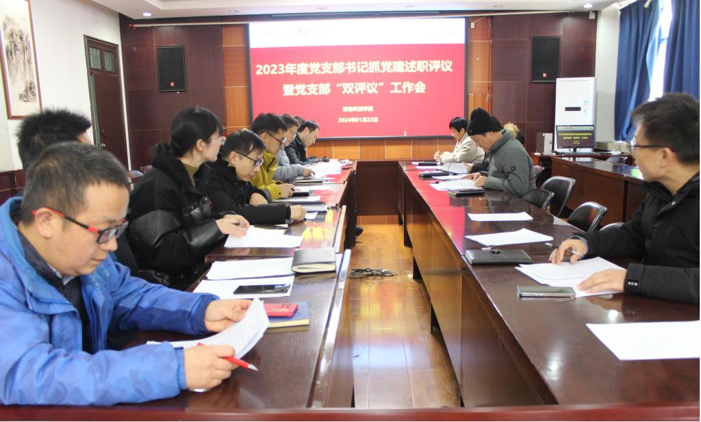 在E302会议室召开了2023年度党支部书记抓党建述职评议暨党支部“双评议”工作会,学院党委委员和支部书记参加会议,会议由党委书记胡付广主持。